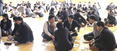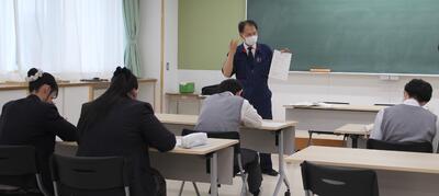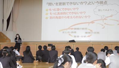 前半は「探究の時間」のガイダンスで、これまでの探究活動を今一度振り返り、今後は常に「問いを更新」しながら6月のプレゼン大会に挑むことを担当教諭が語りました。3年次諸君、後輩と我ら教員を唸らせる発表を期待しています。