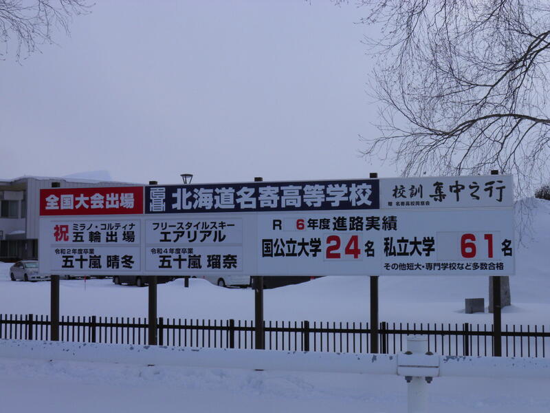 本校としても、卒業生のお二人が大舞台で活躍することを願って、代表選出を祝福する看板を設置いたしました。