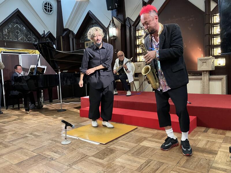 45名の同窓生が参加され、総会は千田会長の挨拶から始まり、事業報告、会計報告等が行われました。今年は東京支部が発足して70周年を迎えたということで、懇親会の中では、44期のプロ・サックスプレイヤーである元晴様らによるミニライブが行われたり、最後には千田会長の伴奏による校歌斉唱をしたりと盛大に会が催されました。