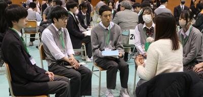 1月16日、本校体育館にて探究之行「地域ゼミ」が開催されました。1、2年次が日々取り組んでいる探究活動を市民の皆様の視点と知恵をお借りして、活動を深化させたり、目標を軌道修正したり、褒められて(?)確信を持つことが目的のイベントです。筆者もあるグループに私見を2~3提示しましたが、それが今後の補助線となってゆけば幸いです。