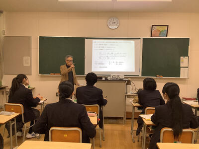 ・1年次向け全体講話(本校進路指導部長及び1年次主任)