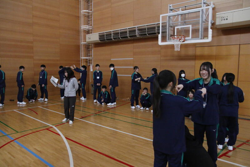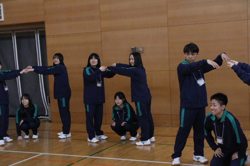 研修1「コミュニケーショントレーニング」は、ネイパル深川の職員の方にご協力いただき、各クラスの交流を深めるプログラムを実施しました。互いに声を掛け合いながら取り組み、自然と会話が生まれ、徐々に打ち解けていく様子が見られました。