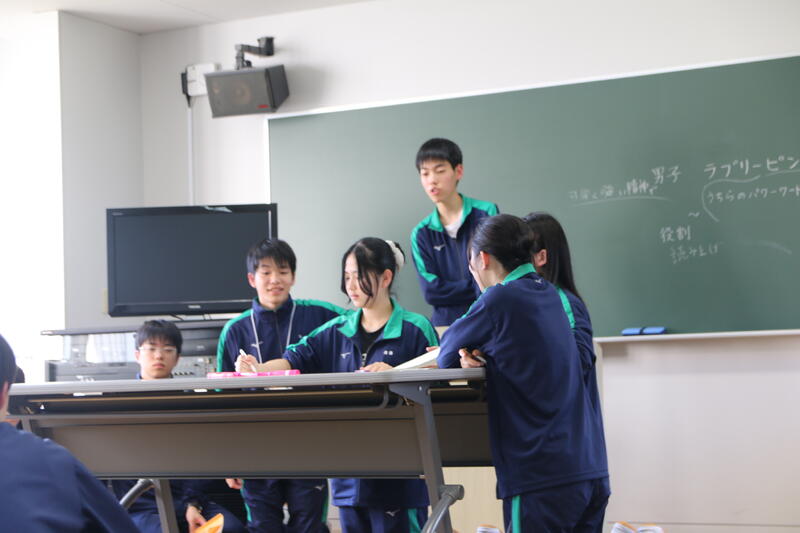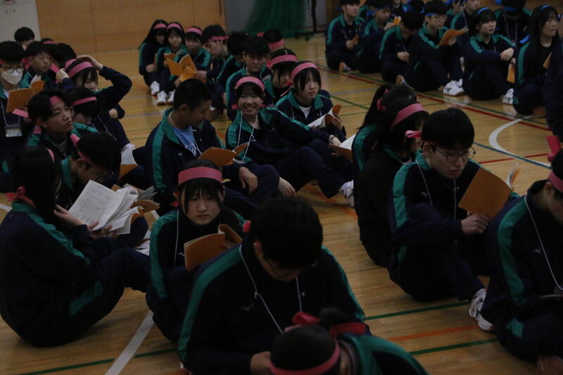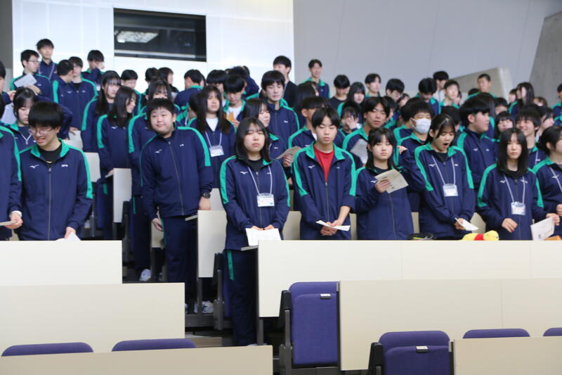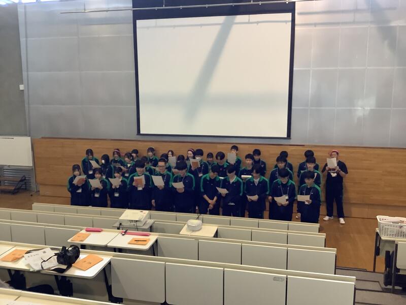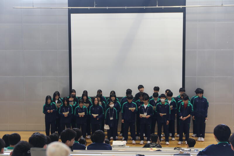 研修7「校歌コンクール」では、難しいポイントを意識しながら学級で心を一つにして歌う姿が印象的でした。本番では、練習の時以上にそろった歌声が会場に響き渡りました、また、他学級の発表を聴く中でそれぞれの良さを認め合う様子も見られました。最優秀賞は1Cでした。結果発表後は、年次全体で校歌を歌いました。学級の枠を超えて一つの歌声となった響きからは、年次としての一体感の高まりが感じられました。