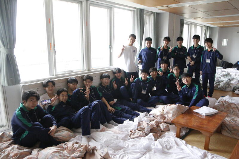 施設の職員の方々による清掃チェックを円滑に進めるため、生徒たちは早起きをし、寝具の整頓に取り組みました。声を掛け合いながら、引率団の先生方の協力も経て、時間を意識して行動する様子もうかがえました。