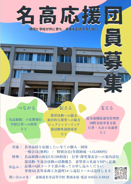 名高応援団概要 名高応援団についての詳細は、次のリンクでご確認ください。 ・名高応援団について *PDF形式 ダウンロード ・名高応援団申請フォーム *Googleフォームへ移動 *画像をクリックする拡大します。